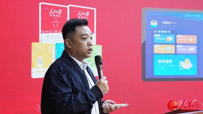 “金台 AI书香”阅读平台项目组顾亮现场演示。人民网 石天蛟摄
