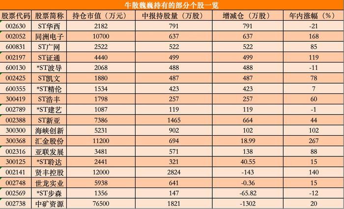 知名牛散魏巍,2010年开始在A股崭露头角,并且逐渐成为市场知名牛散。近15年来,魏巍偏好“抄底”ST股,擅长挖掘上市公司的长期价值,善于以参与定增、司法拍卖、打新股等方式获利。
