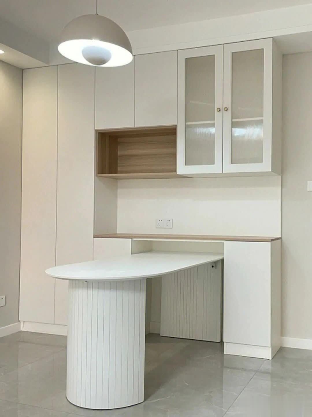 三、悬浮式餐桌嵌入酒柜(适配简约风餐厅,显大显轻盈)