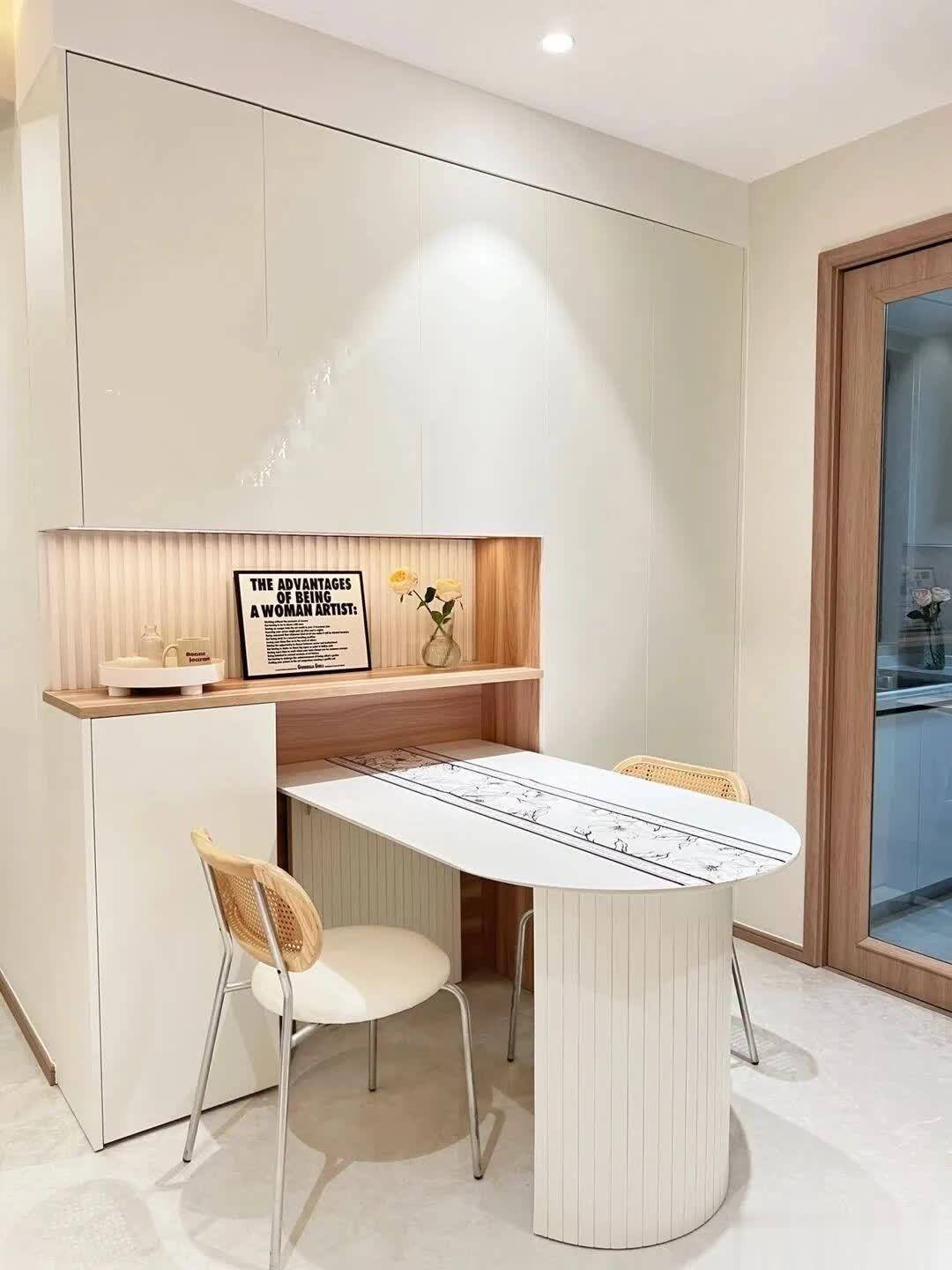 专为3 - 5㎡的超小餐厅设计,折叠餐桌嵌入酒柜,不用时收起贴墙,展开即可用餐,完美解决小空间用餐难题。