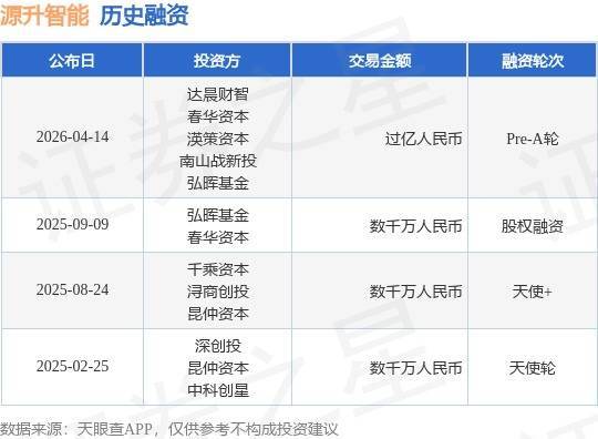 证券之星消息,根据天眼查APP于4月14日公布的信息整理,源升智能机器人(深圳)有限公司Pre-A轮融资,融资额过亿人民币,参与投资的机构包括达晨财智,春华资本正规配资炒股,渶策资本,南山战新投,弘晖基金。